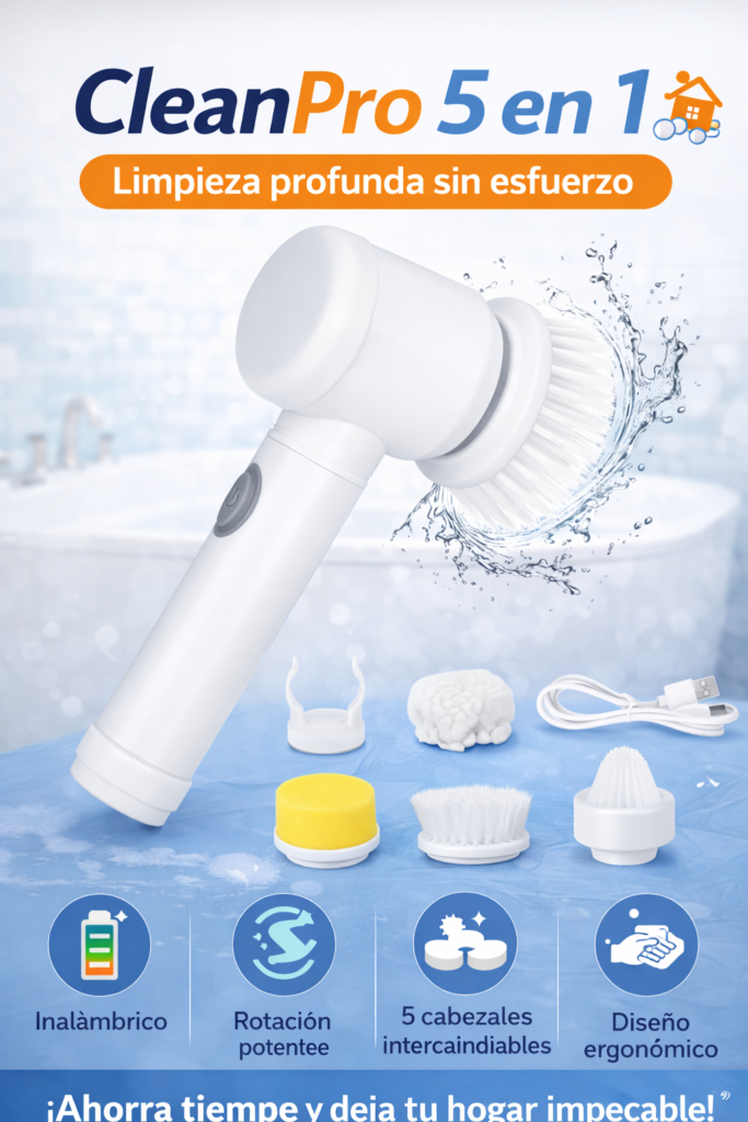 Haz la limpieza del hogar más fácil y rápida 💪✨. Este cepillo eléctrico cuenta con 5 cabezales intercambiables, ideales para baños, cocina, pisos, lavamanos, duchas y más.