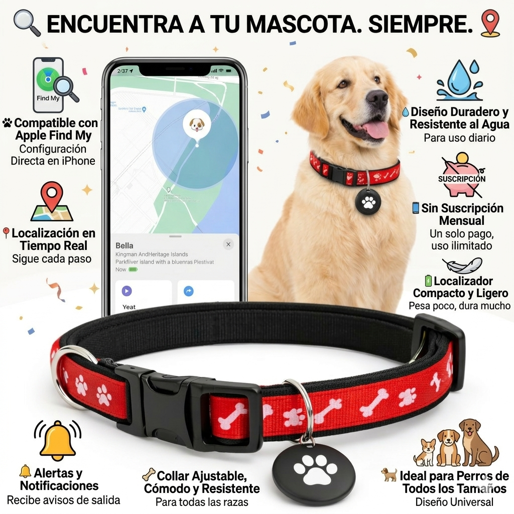 🐾 Compatible con Apple Find My: Se integra perfectamente con tu iPhone 📱 para una localización precisa y confiable.